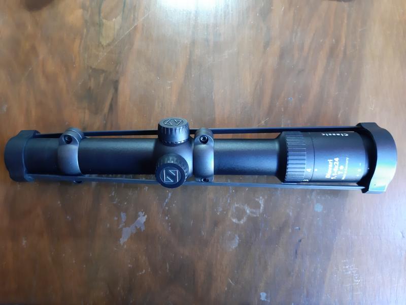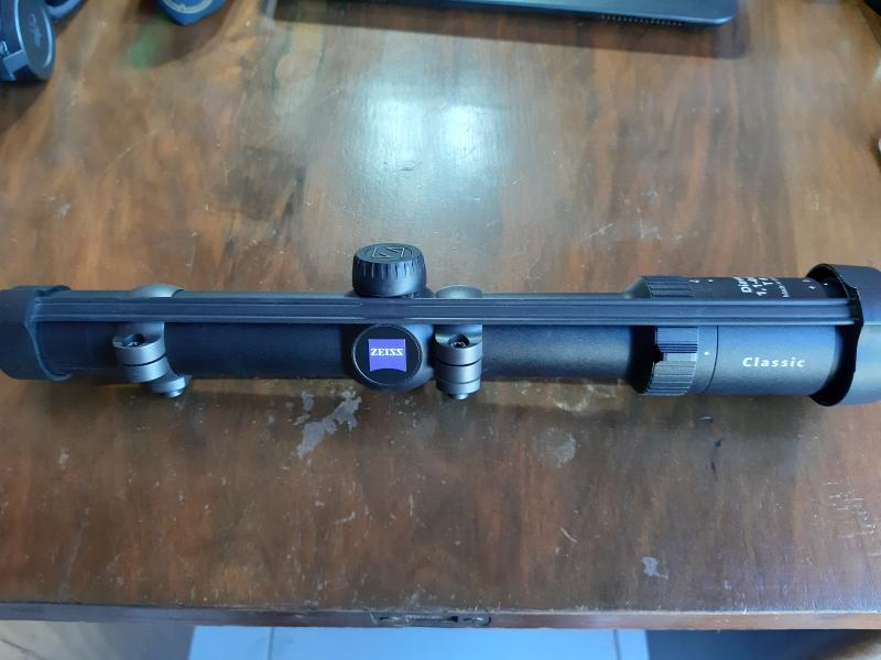 Zeiss diavari Classic 1.1x4x24, con ligeras marcas de la anilla delantera. Con anillas Leupold QR o QRW2. 600 euros.