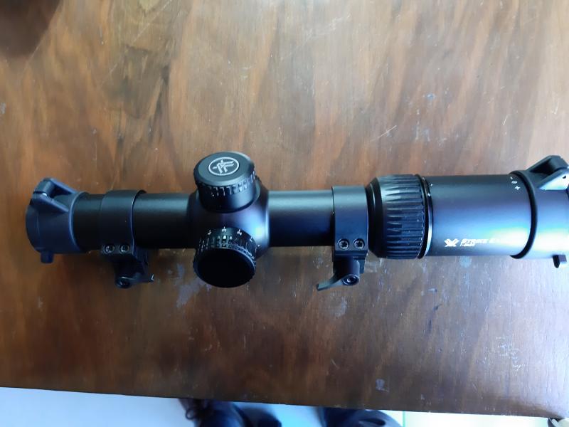 Visor Vortex Strike Eagle 1x8x24, nuevo a estrenar, con anillas Leupold QR o QRW2, 400 euros.