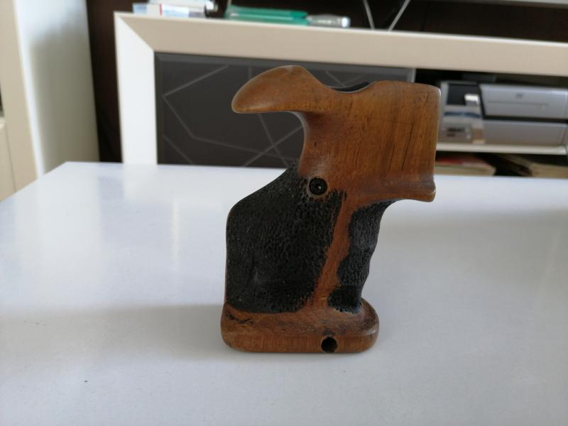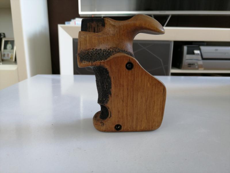 Se hizo para un revolver llama con el que tiré durante 19 años allá por los 90.. Ya no tiro. Está perfecta y es de castaño. Tamaño medio. 50 euros.