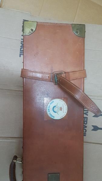 magnifico maletin de cuero para rifle asemiautomatico o monotiro, tambien podria valer para escopeta, sin roturas ni descosidos, cerradura sin llave no me interesan cambios,