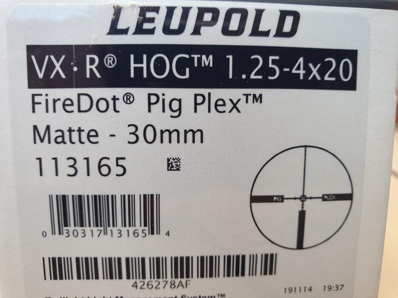 Hola, vendo Visor Leupold VX-R HOG 1,25-4x20. Reticula iluminada Pig Plex, diámetro 30 mm, impecable, comprado nuevo hace un año. Caja, tapas y toda su documentación.