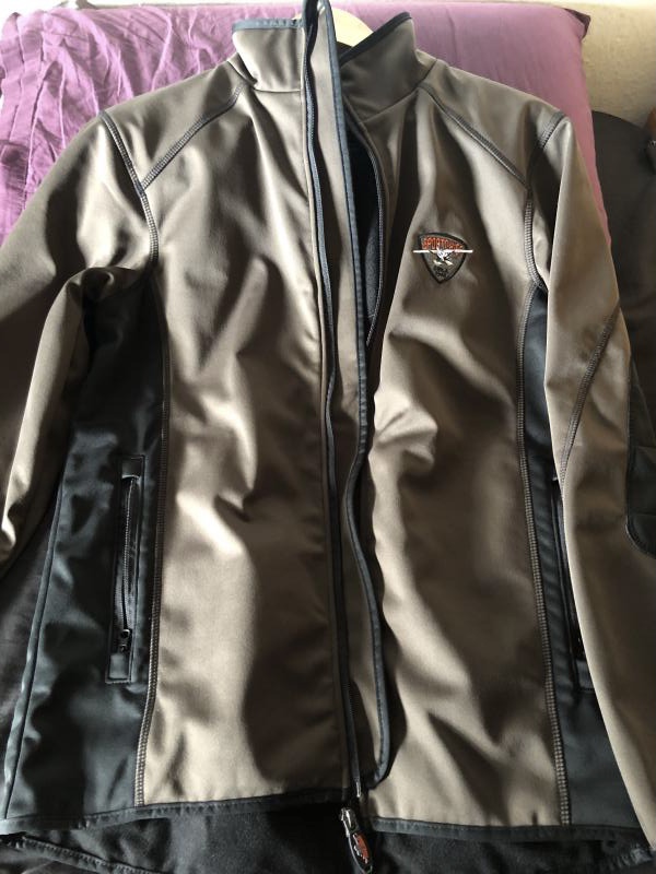 Las tercera y cuarta camuflaje naranja y la otra color marrón de tipo softshell repelentes al agua 1 bolsillo en cada lado y 1 grande detras como nuevas prácticamente sin uso casi 30€ cada una.