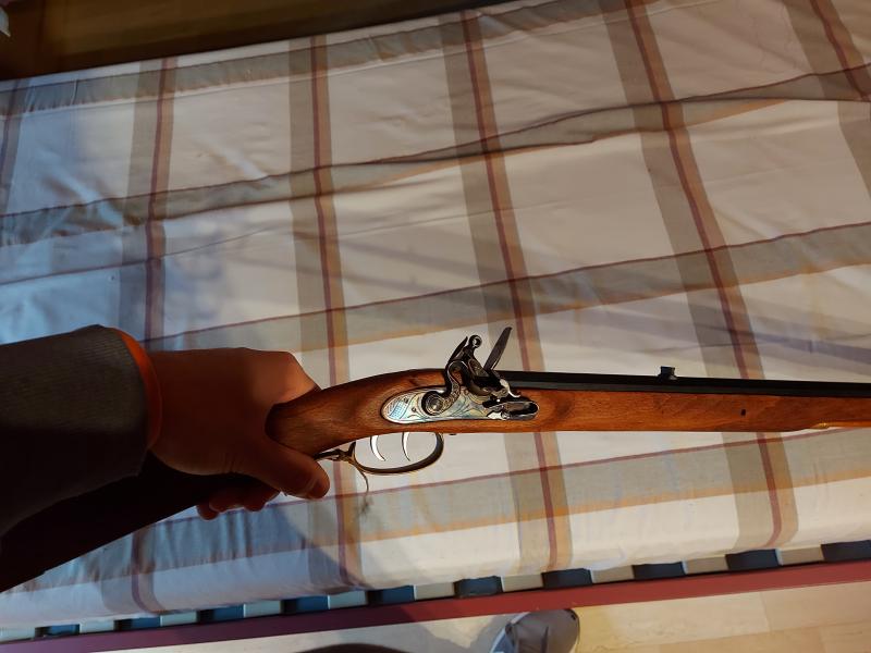 Vendo rifle kentuky de chispa marca Ardesa. Rifle bastante equilibrado y pese a lo que parezca, el peso está bastante bien repartido. Con pelo para ajustar la presión del disparador a gusto del tirador. El paso es 1/66 y lo utilizo con proyectil esférico (bala y calepino). 35 grains a 50 metros va fino fino. Punto de mira nuevo y piedra nueva. Viene con turquesa del 44.40. Un arma sumamente interesante y adecuada para empezar en el mundo de la chispa. Precio 320€ (negociable). El arma está en Toledo. Cualquier duda o más fotos o vídeos no duden en escribirme al WhatsApp: 667659130.