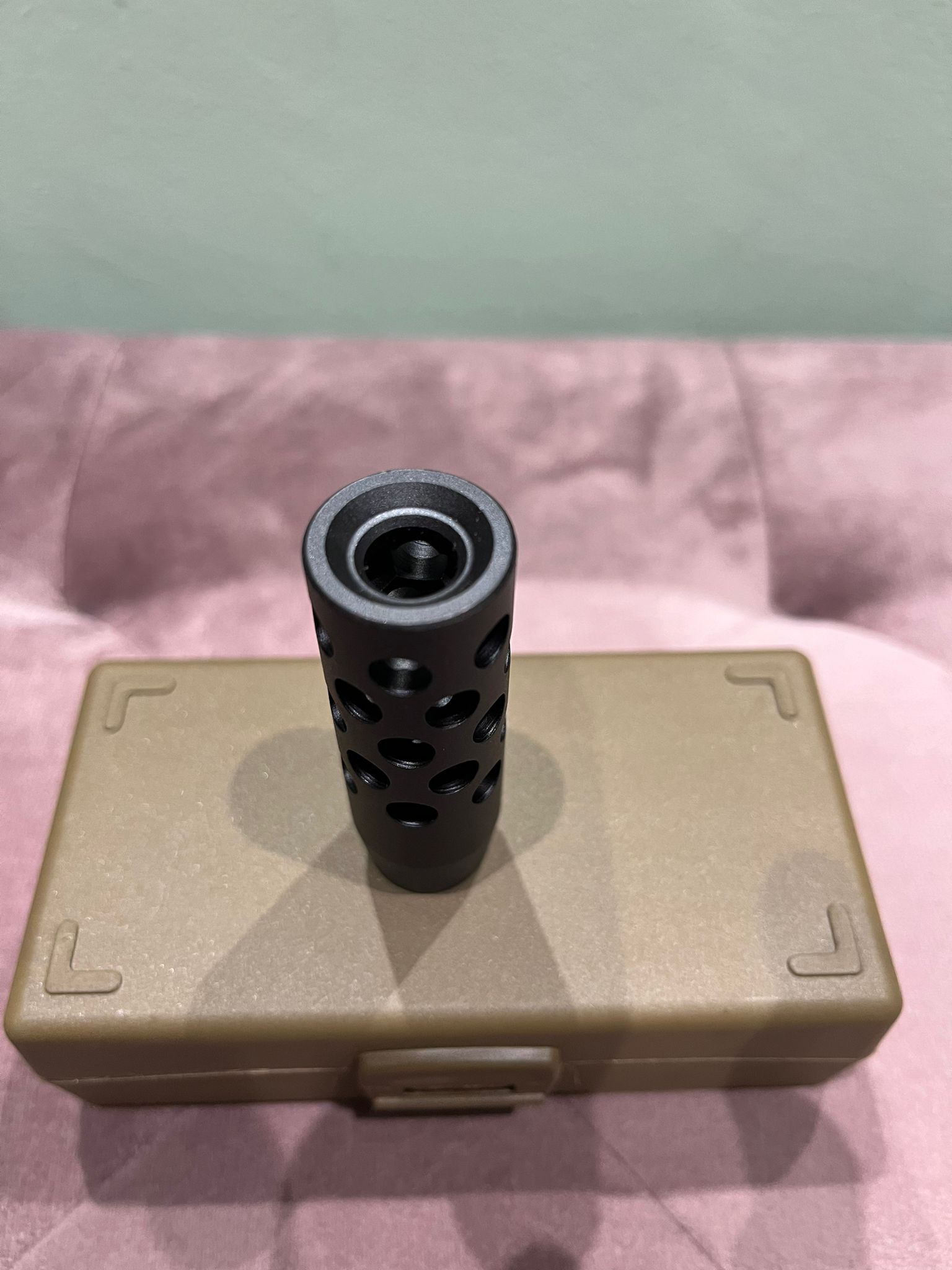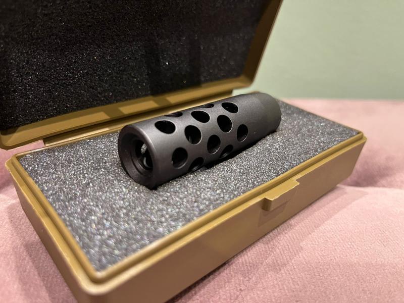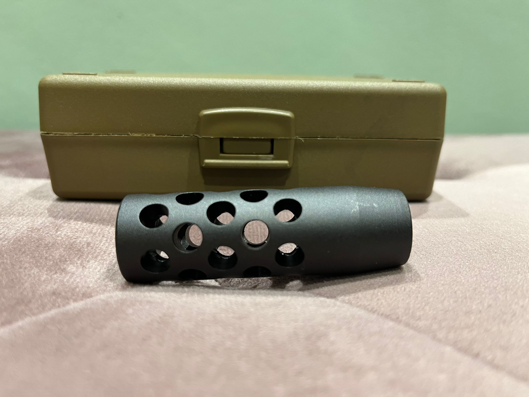 Freno de boca para cal. 30 o inferior.La rosca es 5/8-24.No tiene ningún uso.Mecanizado y acabado excelente.Muy efectivo tras su instalación.