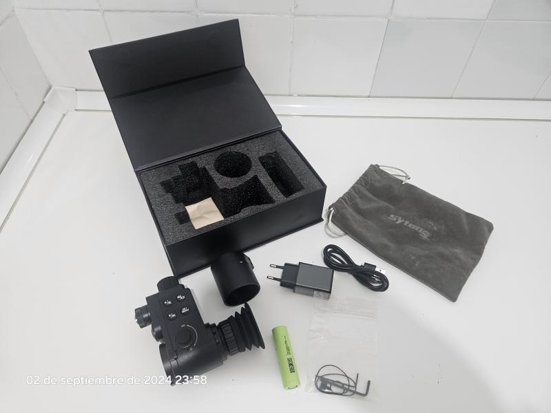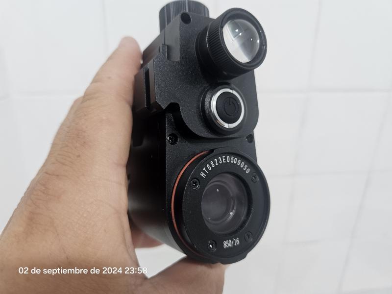 Visor nocturno de 850nm con acople clip-on para el visor. Se puede usar igualmente sin acoplar al visor. Prácticamente nuevo, fue un regalo de reyes y no le doy uso. Puedo enviar un par de videos grabados con el mismo para ver calidad de imagen. Se puede ver y probar sin compromiso. Tiene modo grabador de vídeo con sonido, foto, y aplicación para ver desde el móvil.