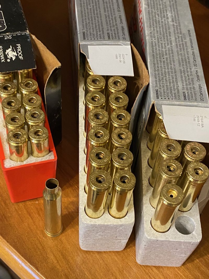 Vendo este lote de 160 vainas del calibre 300WM de la marca Winchester. Estan limpiadas y con piston quitado. No estan recalibradas. Son 8 cajas en total, 7 una clase y 1de otra todas de la marca Winchester claro (no eran para la misma cosa). Tambien sirven para hacerse vainas del calibre 308NM, aunque no crea que alguno tenga este calibre para la caza.