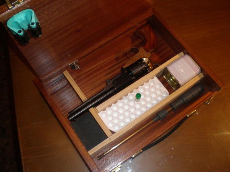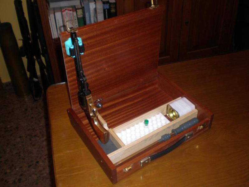 Aunque este maletín es un prototipo, y sólo puede alojar el Navy de la foto, también es válido para revólveres tipo Remington, e incluso para pistolas de duelo, como podéis ver. En el futuro, mi idea es hacer un maletín en el que acople cualquier arma, aunque deberá ser de mayor tamaño, pues las pistolas como la Rochatte abultan lo suyo.