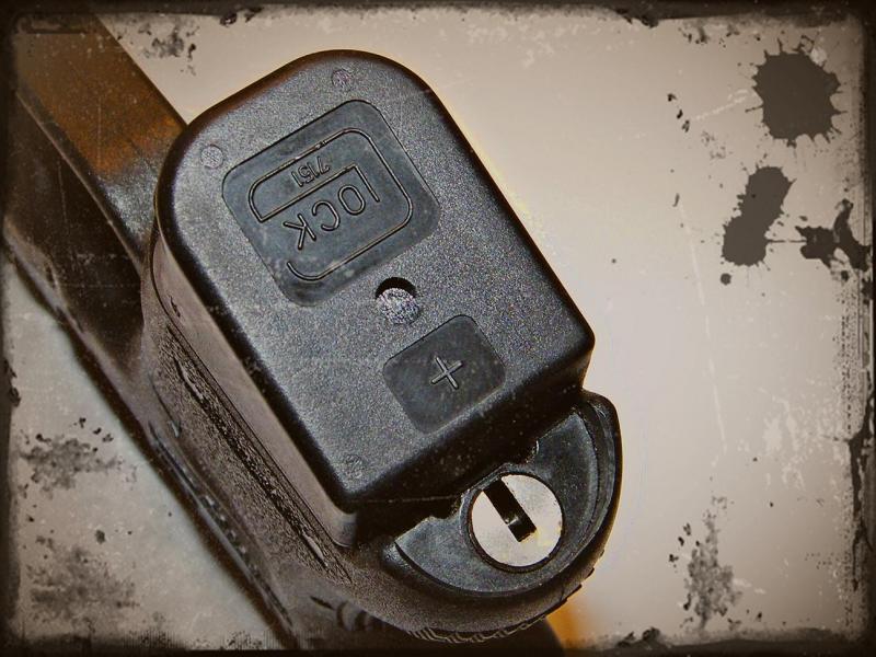 La llave es una cerradura de seguridad que bloquea la aguja percutora y el gatillo, para saber que esta puesto lleva indicador en la culata de que esta accionado con un pequeño escalón que sobre sale en la parte de atrás.