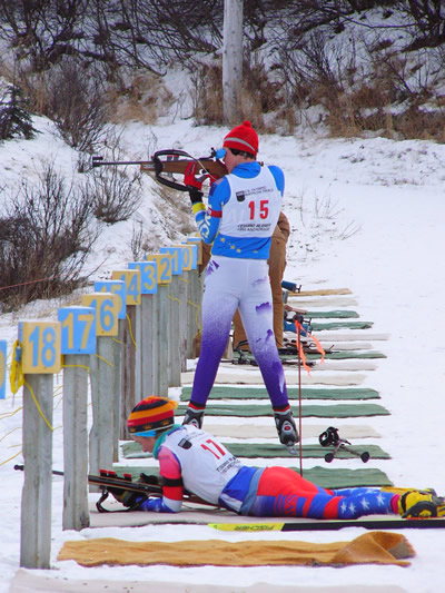 Se trata de un carrera de esquí de fondo en la que en determinados puntos del recorrido los participantes deben pararse a disparar con un rifle sobre un blanco estático, penalizándose cada fallo bien recorriendo una distancia adicional o bien añadiendo tiempo al total de la prueba, y ganando finalmente el que totalize menos tiempo.