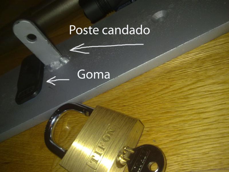 Necesitas el taller de un amiguete, dos hierros y un poco de pintura. El candado vale 5 euros y un seguro de guardamonte 14,95 en decathlon.
