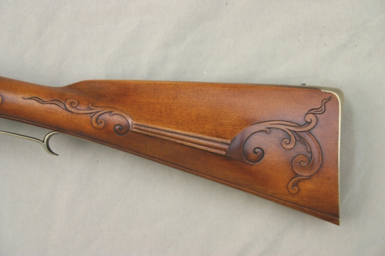 El azúcar de troncos cortados de valores excepcionales de arce es de Harrison y Freddie es oscura manchada con agua fuerte y acabado con aceite de linaza. Todo el hardware y el barril de bloqueo, excepto la mano fueron producidas por Jim. El cañón es el hermano de arroz y tiene 44 pulgadas de largo y calibre .54. El corazón del fusil es un bien afinado, con modificaciones, a principios de bloqueo Ketland Salas, que Jim cementado.