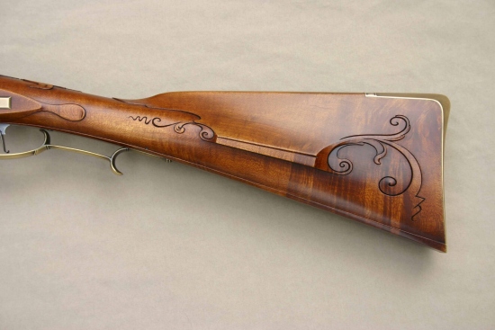 El azúcar de troncos cortados de valores excepcionales de arce es de Harrison y Freddie es oscura manchada con agua fuerte y acabado con aceite de linaza. Todo el hardware y el barril de bloqueo, excepto la mano fueron producidas por Jim. El cañón es el hermano de arroz y tiene 44 pulgadas de largo y calibre .54. El corazón del fusil es un bien afinado, con modificaciones, a principios de bloqueo Ketland Salas, que Jim cementado.
