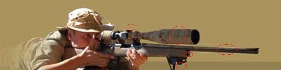 La que marco en el cañón es porque lo has acortado y la del visor porque lo has agrandao