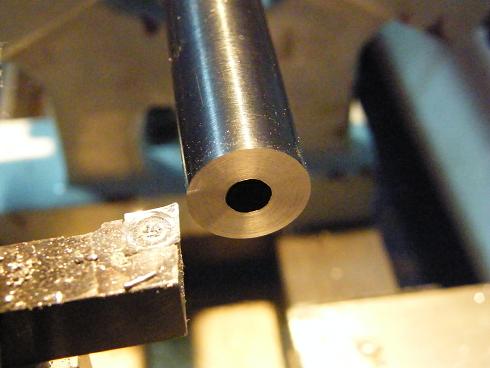 Aparte del tema del casquillo cuando puse el cañon entre puntos en el torno me di cuenta que el cañon estaba doblado como 1´5mm