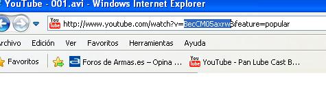 copia lo que sale despuyes de la V en la barra de direccion y lo pones en medio de [youtube V /youtube]
