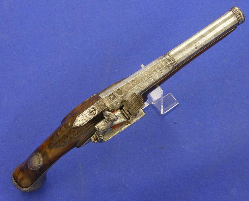 A very nice Dutch Flintlockpistol by Oger Leblan, Maastricht about 1720, caliber 16 mm, length 53 cm, in mint condition