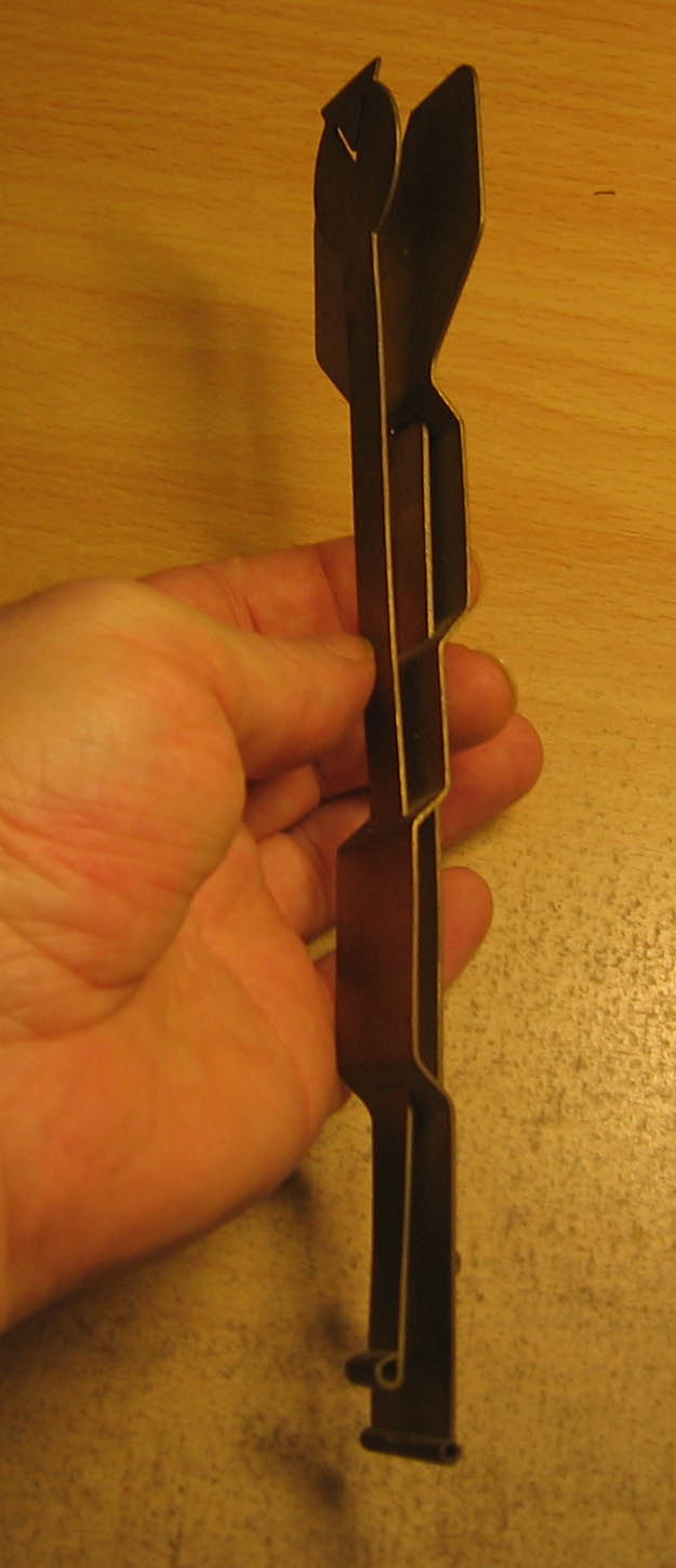 Me temo Ribetano que estás confundido, si te fijas en la parte inferior lleva grabado un "emblema o escudo" lo que me da a pensar que es un útil de pequeñas dimensiones, por lo que descartaría que fuese un blanco, tal y como sugieres. Calculo a juzgar por dicho emblema que sea de dimensiones reducidas, algo como para ser manejado por una sola mano, tamaño bolígrafo más o menos.