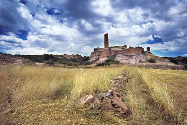 Sus laderas norte y este son inexpugnables, y en el sur y oeste se levantó una muralla en forma de ángulo recto de unos 3 metros de espesor, reforzada por tres torreones rectangulares.