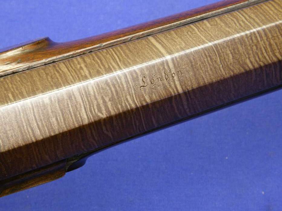 Este deportivo y muy pesado fusil ingles de anima lisa tiene el calibre de 19 mm. y un largo de 150 cm. en perfectas condiciones. Tiene en el cañon, parte superior, la incripcion London y en la parte inferior, las marcas del banco de pruebas de Birmingham, I.W. y tambien TWISTED.
