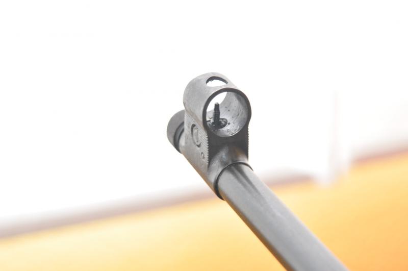 De origen viene con alza de librillo para 25/50/75/100 mts. y punto de mira con cubrpunto metalico, carril en cola de milano 11mm (3/8") para instalación de optica, boca del cañón con rosca y cubre rosca de origen .