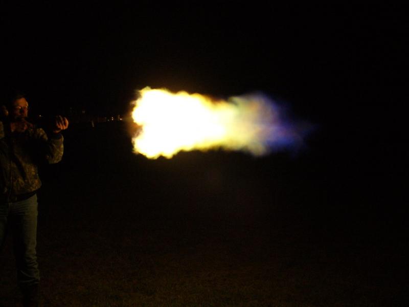Lo que si es verdad es que si tiras con poca luz, parece un lanzallamas.