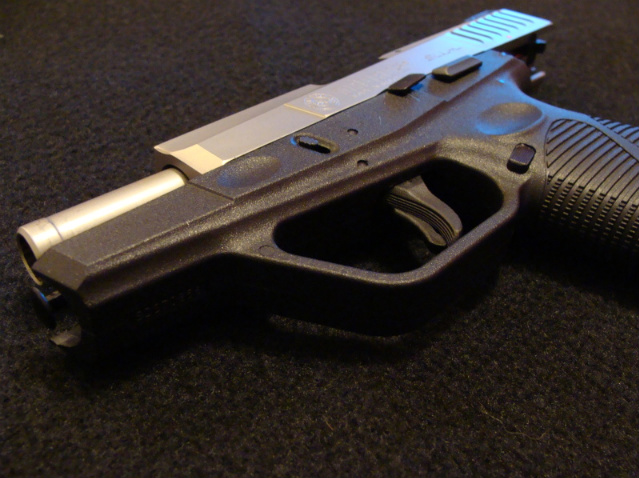 Es una pistola muy delgada, de unos 16cm de longitud y una pulgada de grosor, sin embargo es guiable con la F