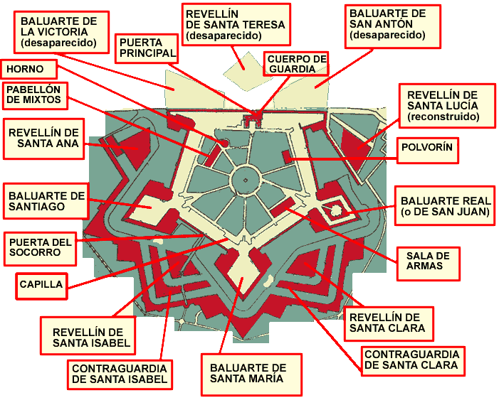 En el plano de dicha Ciudadela podemos ver la situación del depósito de pólvora y municiónes.