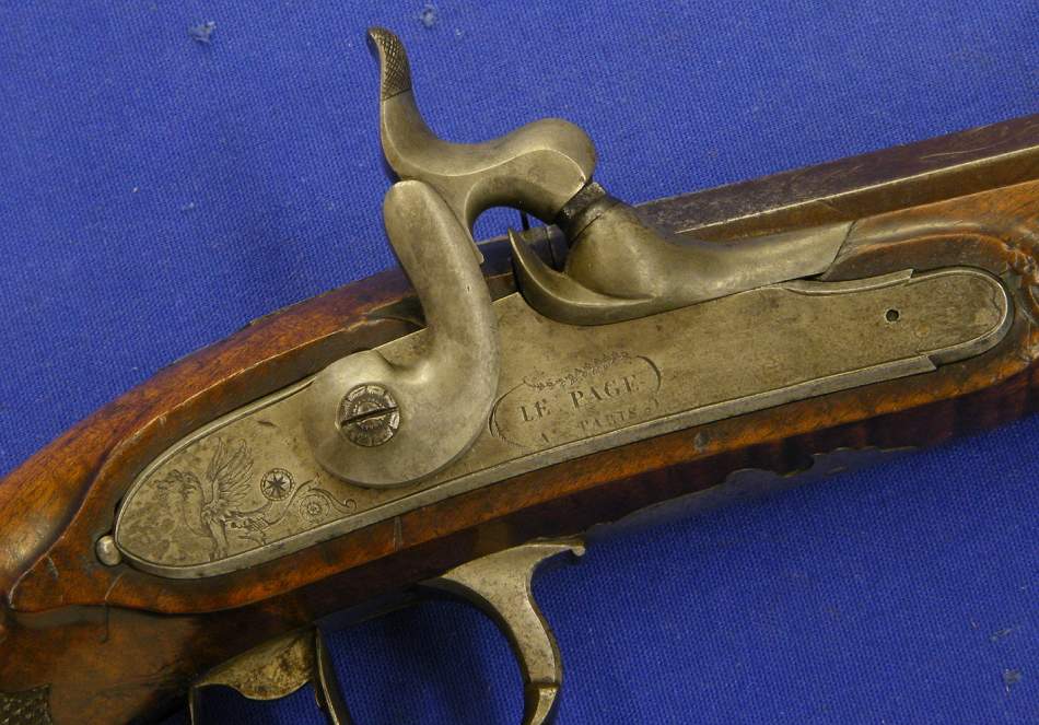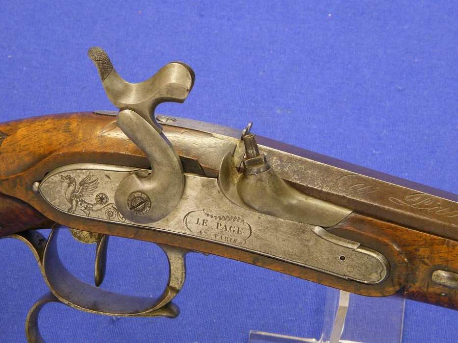 A very nice French Percussion Pistol by Le Page Paris, caliber 14 mm, length 37 cm, in mint condition