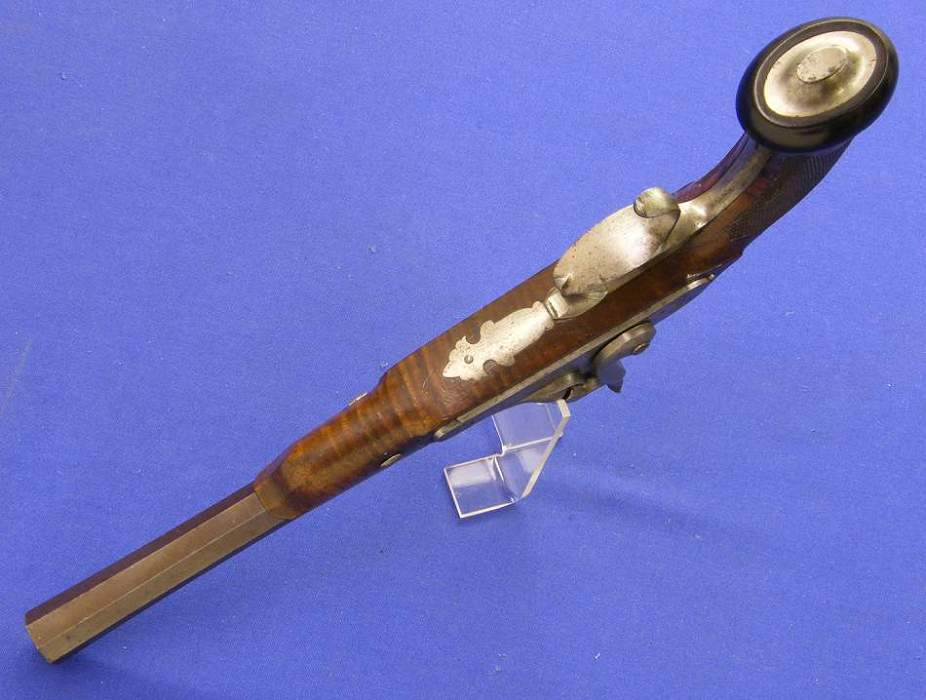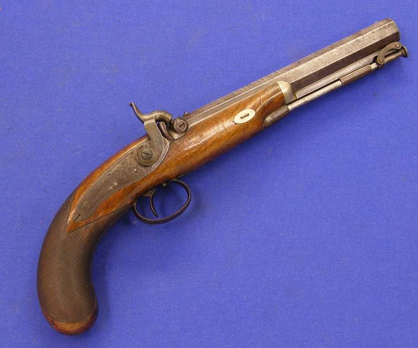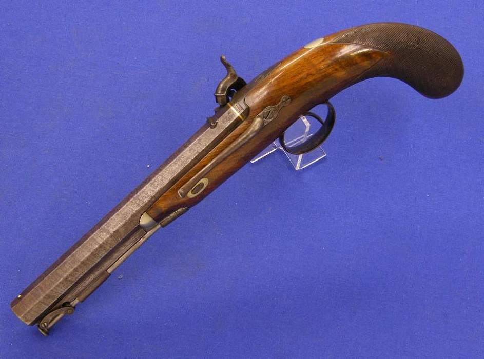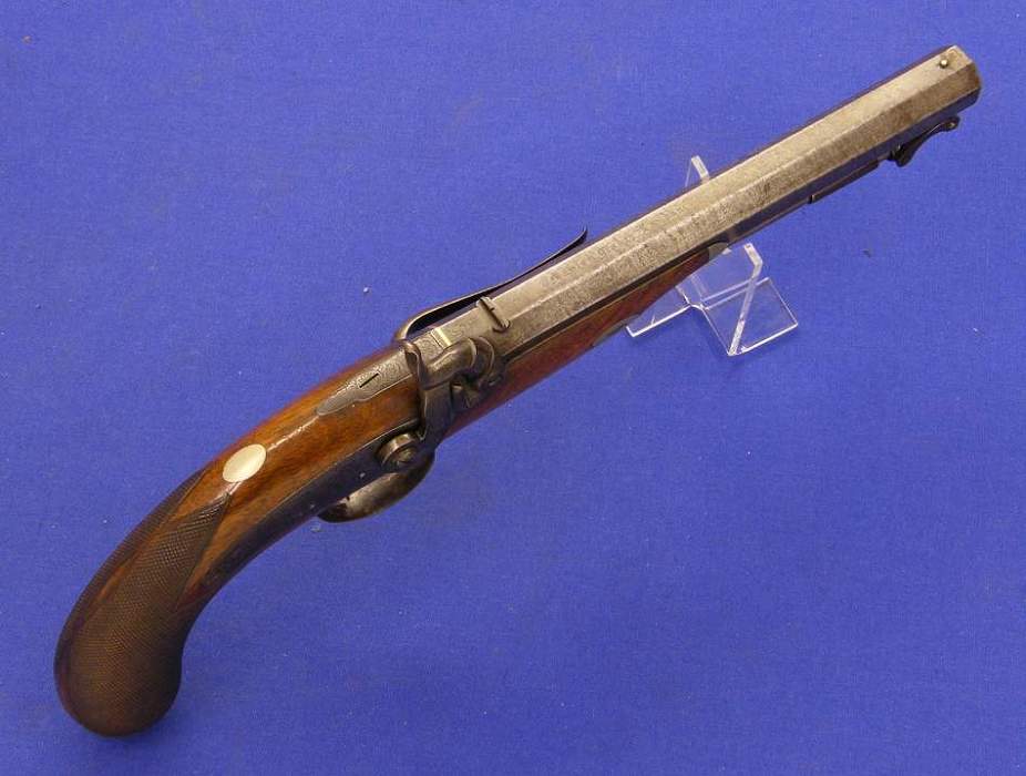 A very nice English Perkussion Pistol, about 1860, by MANTON LONDON, caliber 16 mm, length 38 cm, in very good condition