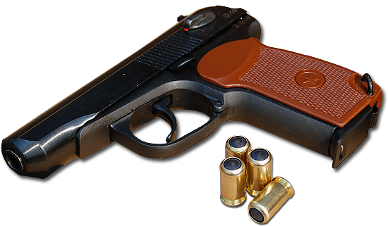 aaAahh!.. ya, pero el ruso no se dispara con un arma de verdad, es una pistola "traumatica" que utiliza unos cartuchos con bala de goma el modelo es izh-79-9T "makarich", tiene una potencia muy escasa, aún así no está disañada para dispararse en la sien a bocajarro.