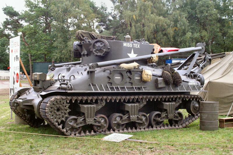 Sherman Vc Sherman V réarmé con un cañón 17pdr por los Británicos, apodado Firefly.