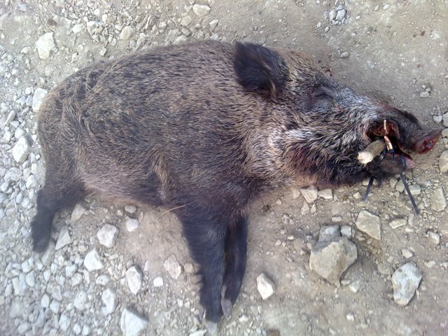 Pero en el comentario no mucho porque tenía un tiro en el costillar, un segundo en la cabeza y aún le metió un tercero porque el bicho seguía en movimiento por su senda.