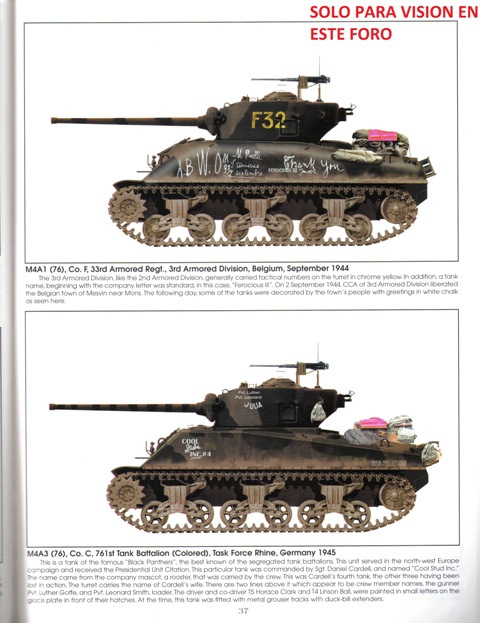 mas laminas....de casi todos los modelos de sherman vistos en el ETO...teatro de operaciones europeo....