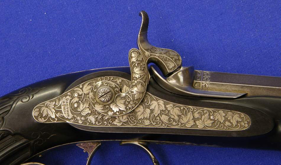 A superb cased percussion pistol by Gauvain a Paris, caliber 12mm, length of the pistol 41 cm, in mint condition