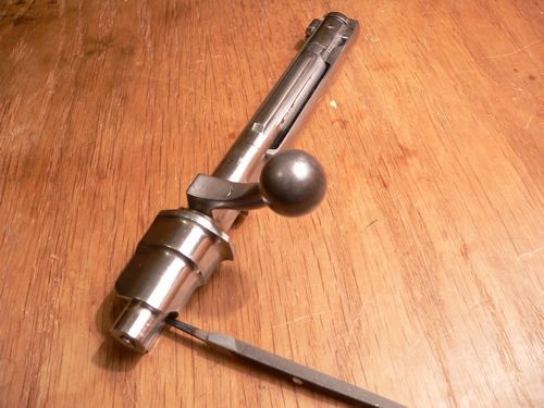 Ahora tenemos que pasar el cerrojo a posición de "cerrado". O sea, que la maneta tiene que bajar en la dirección de la flecha de la foto anterior.