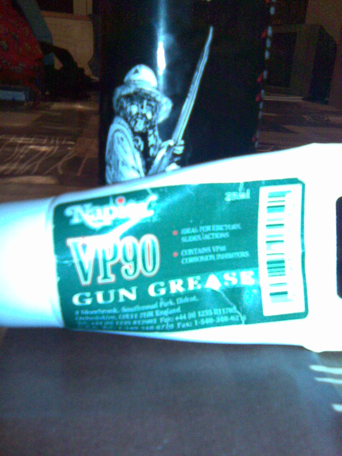 Y con respecto a la grasa Napier, es una de las mejores grasas del mundo, con inhibidores de fase vapor y que hace que sea materialmente imposible que se oxide el arma por donde la pases con un trapo. Es fundamental en climas húmedos y funciona de maravilla. Napier es una de las marcas que fabrica los aceites y grasas más sofisticados del mundo del tiro, sobre todo para AC y avancarga.