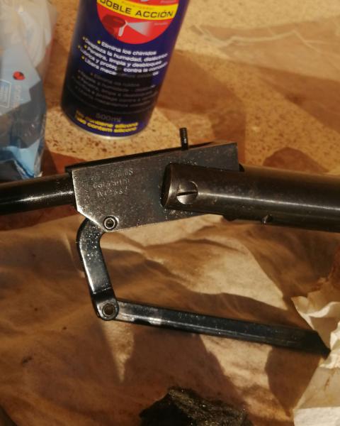 Y ésta sabéis que modelo puede ser?... No tiene los surcos para el visor, por si sirve de algo, el gatillo es metálico, no macizo, pero el guardamontes es de plástico...