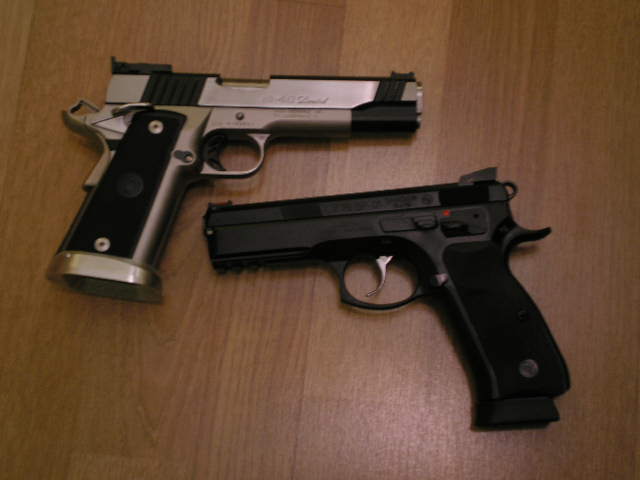 Las dos son muy buenas pistolas y ya entran los gustos de cada cual, hay quien le gusta más el plástico y otros el hierro. Hace unos años el plástico era la leche y las demás una merda, ahora parece que es al revés, curiosamente las grandes marcas comercializan armazones de hierro y otras aleacioness... Con estas cosas del tiro suele pasar y es que, verdades absolutas hay pocas.