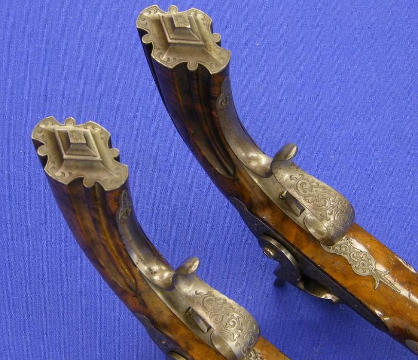 Bueno, pues aquí una pareja de pistolas que me hicieron darle muchas vueltas,( a las fotos) pues tienen doble llave pero por mas que miraba solo veia un cañon en cada pistola ...