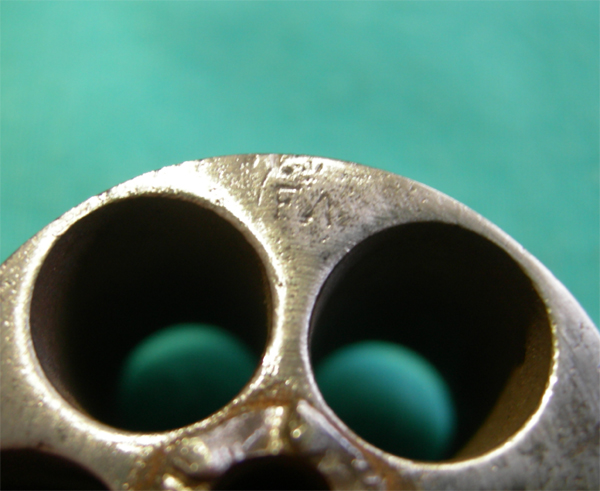 Para cambiar de las diatribas acerca del nuevo reglamento, os propongo una investigación sobre unas marcas aparecidas bajo una capa de pintura en un puppy eibarrés. Se trata de una "P" coronada dentro de un círculo, y las letras"A F" en el tambor, también coronadas. Añadir que la corona es diferente de la que viene en la P que todos conocemos del libro de JL Calvó, y que se encontraba en las Sharp Sooter.
