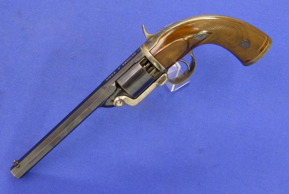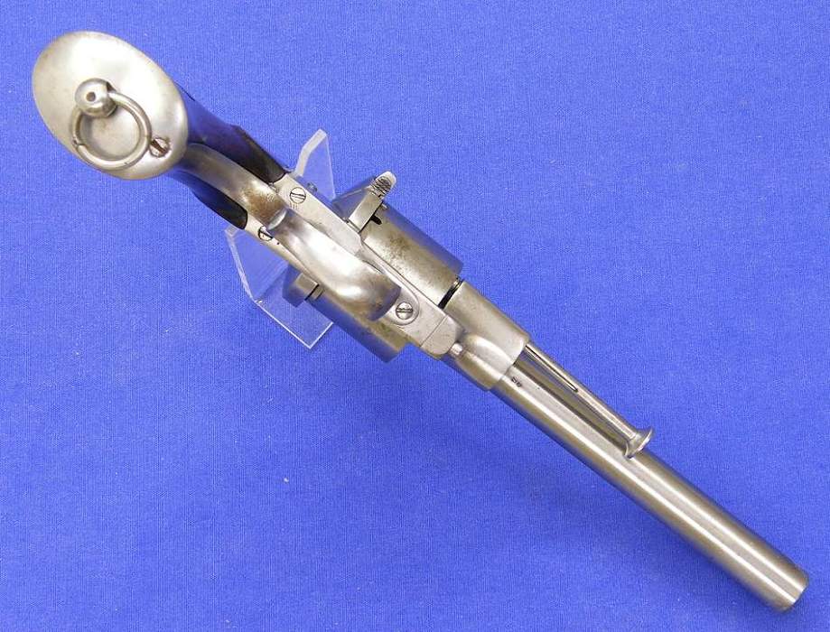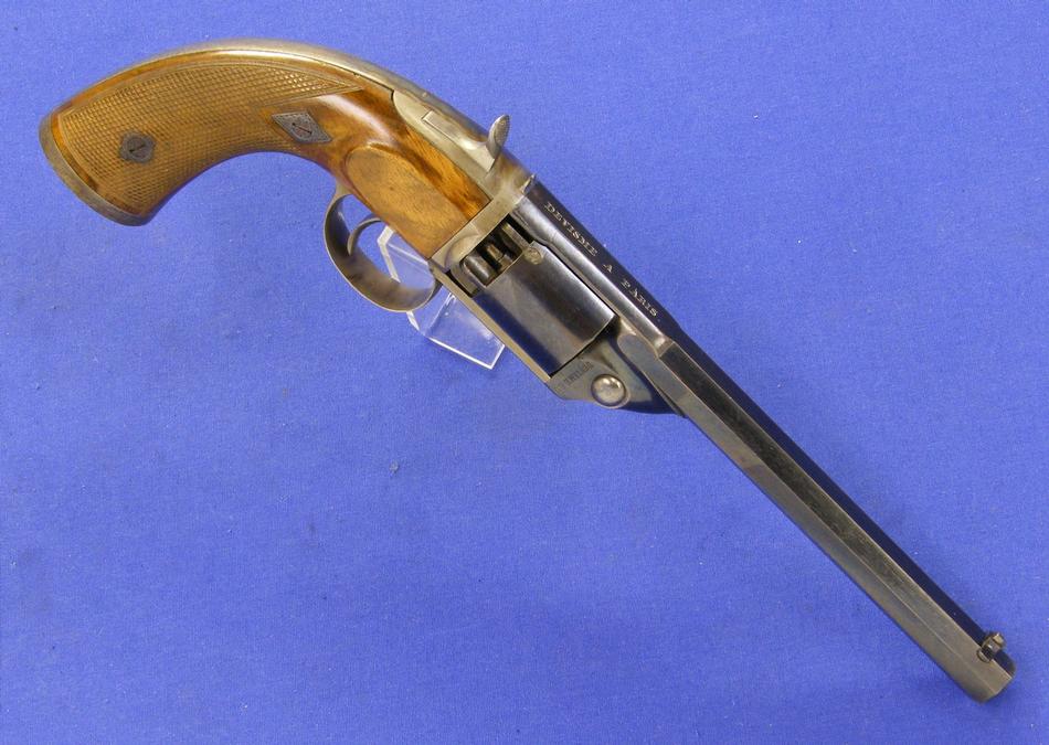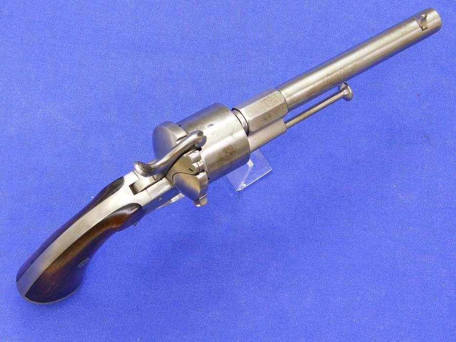 A very scarce Dutch pinfire revolver signed E. DE BEAUMONT (Maastricht) in mint condition, kal 11 mm, length 30 cm . Price 2.000 euro