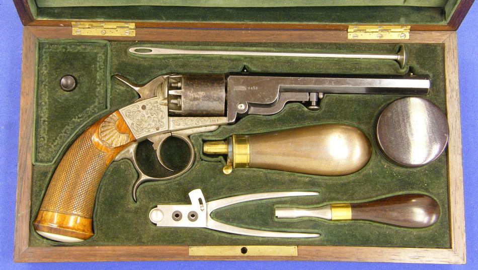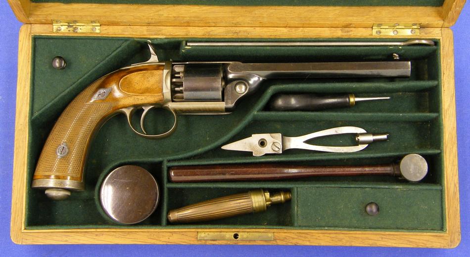 A very nice Cased Liege Percussion Revolver by DEPREZ, cal 9 mm, length 32 cm, in mint condition. Price on request