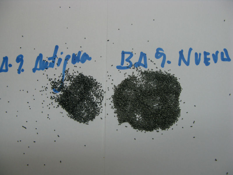 Fotos de las dos pólvoras, la granulometría no se parecen ni de coña, y no digamos el color.