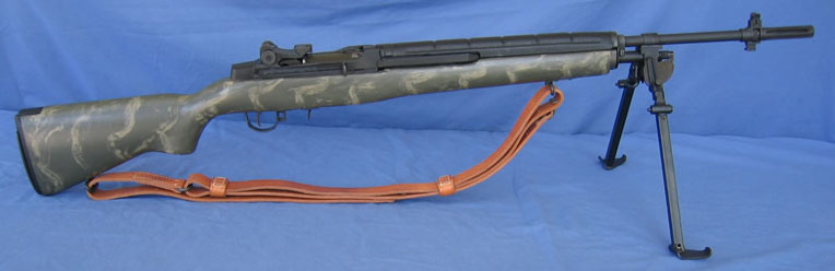 Afirmativo. M-14 con correa Whelen. Su versión civil es el M1A. Puede ser cualquiera de los dos, el militar en 7,62X51 NATO y el civil en .308 W. Es como los que utilizan para las competiciones 3-Guns.