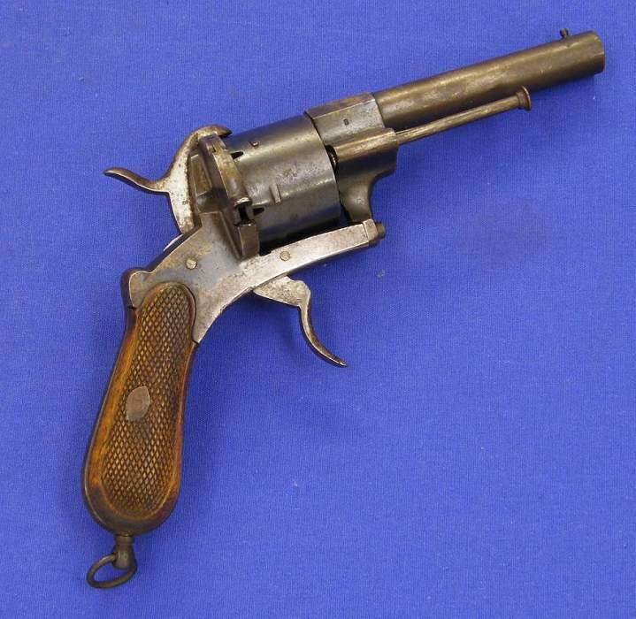 A good French 19th century Pinfire Revolver, 6 shots, caliber 11 mm, length 26 cm, marked "8", in good condition . Price 450 euro