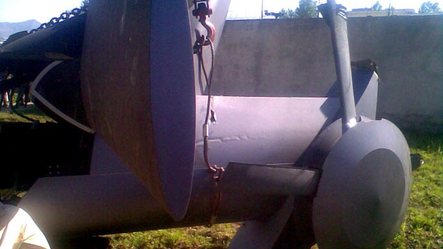Aparentemente uno de los helicopteros que trataba de dejar a los operadores dentro del recinto de la casa chocó su cola contra el muro y por eso se quedó tirado.