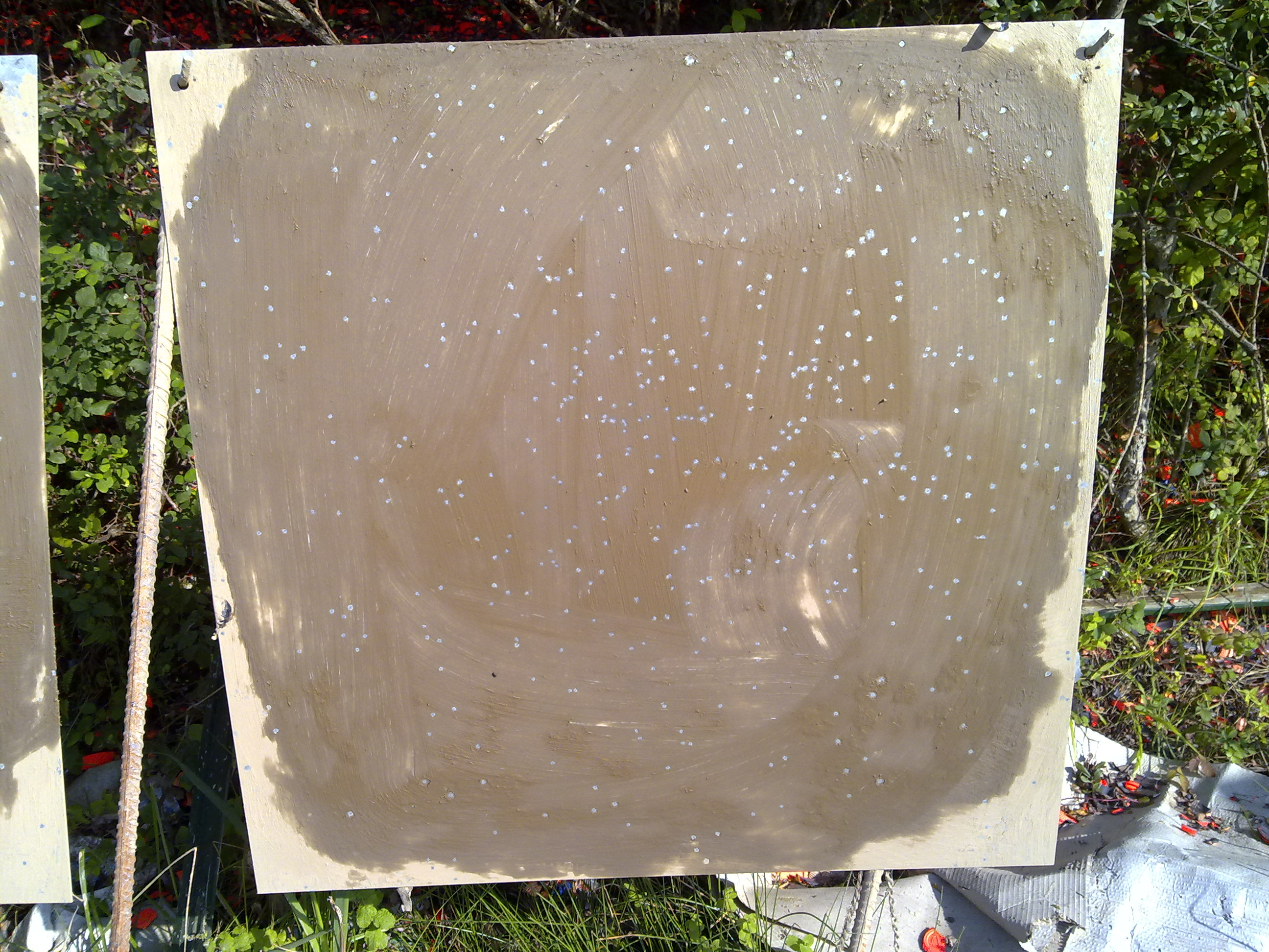 En mi caso están hechas en el Campo de Tiro San Marcial de Irún donde hay un lugar acondicionado para ello. Como tú bien dices hay unas planchas metálicas, un cepillo y barro para "pintarlas".