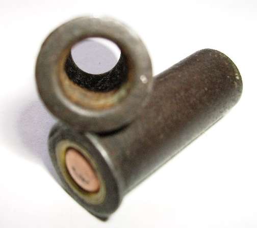 pues este otro que tengo del 410 es de hierro también torneado y este me vinieron tres uno cargado , supongo con perdigón pues lleva una especie de tapón no sabría decir de que .