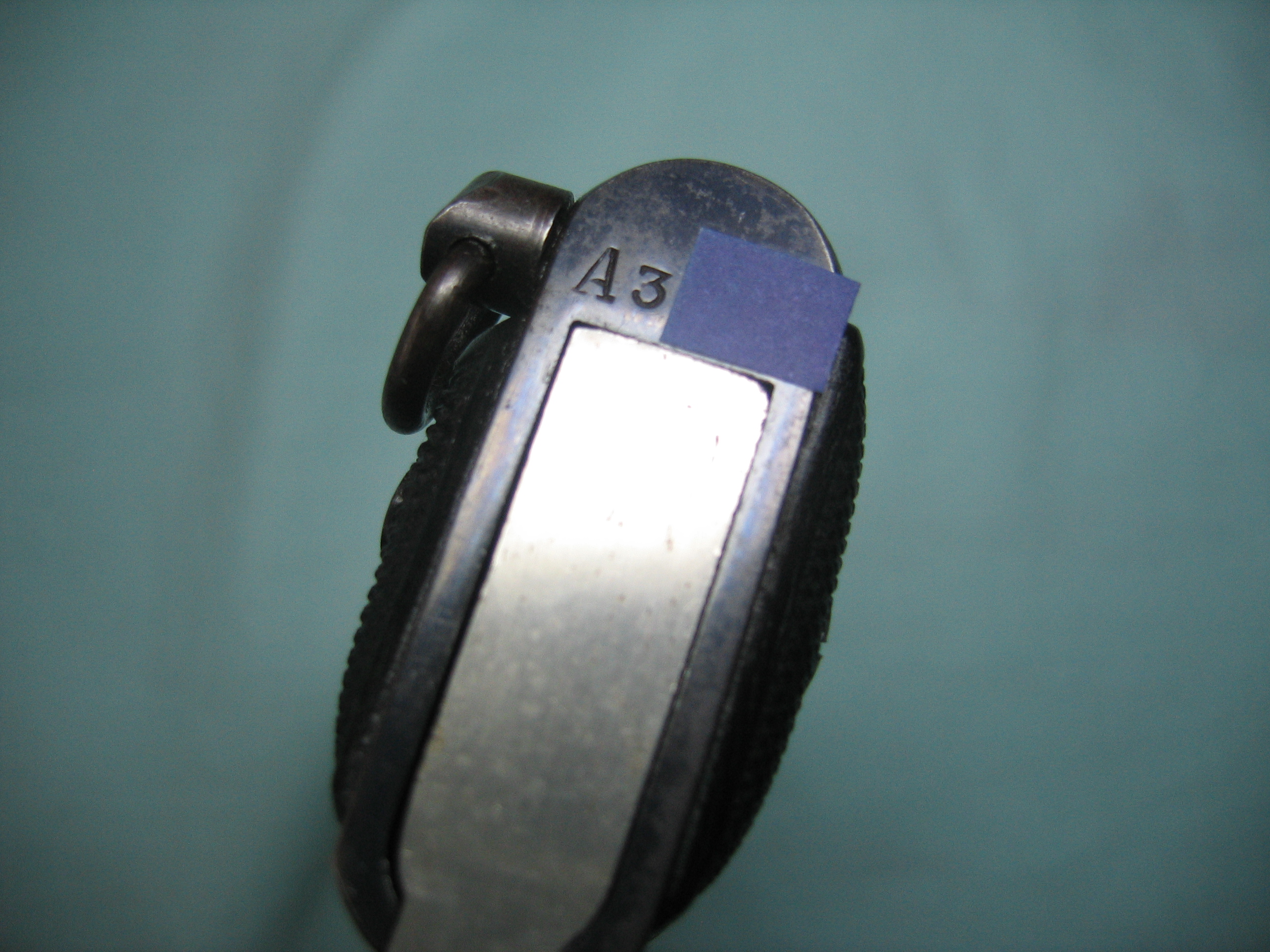 1ª)Vista desde el lado derecho, el alza NO tiene tornillo o ranura atornillada. Es lisa, como en el lado izquierdo.