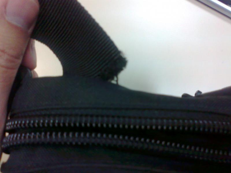 El caso es que no llegando a los cuatro meses de uso y habiendo cargado la bandolera con los "aperos" de trabajo oportunos, la sujección de la correa a la bolsa se ha descosido totalmente.